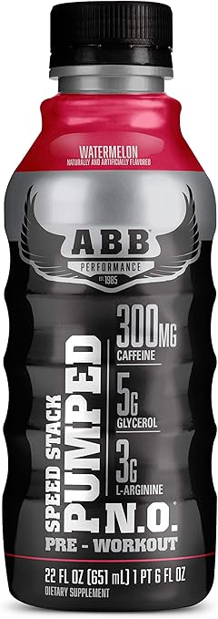 Amazon Com American Body Building Abb Speed Stack Pumped N O Pre Workout Energy Shake High Caffeine And Performance With Zero Sugar Watermelon Flavored Ready To Drink 22 Oz Bottles 12 Count Health Personal